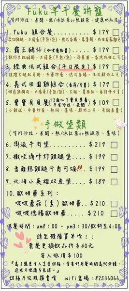 ↓Menu(轉貼自甜福Fuku Brunch 官方粉絲團)