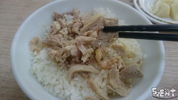 白飯上頭放上份量剛好的雞肉絲!再淋上雞汁!