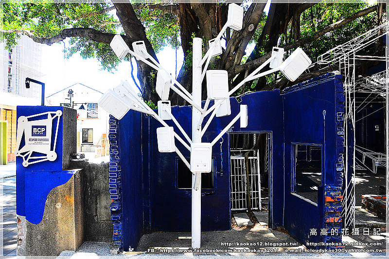 搭配藍晒圖裝置藝術,並融合原有之老樹、紅磚、綠蔭、新創與藝術等特質,