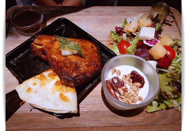 一旁附的是滑蛋起士煎餅與自製優格,吃完相當有飽足感。