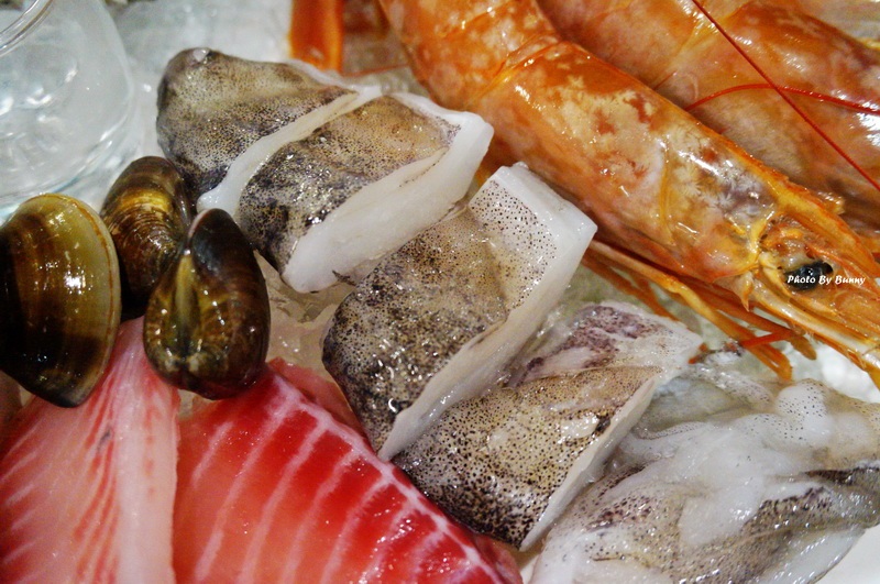 加上帆立貝、軟絲、生蠔、魚片、蛤蠣