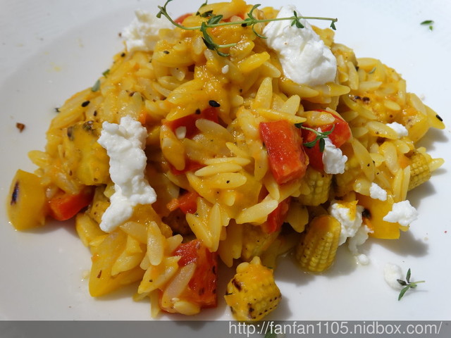 以富含眾多營養素的南瓜,搭配紅、黃甜椒、玉米筍、百里香、瑞可達起司