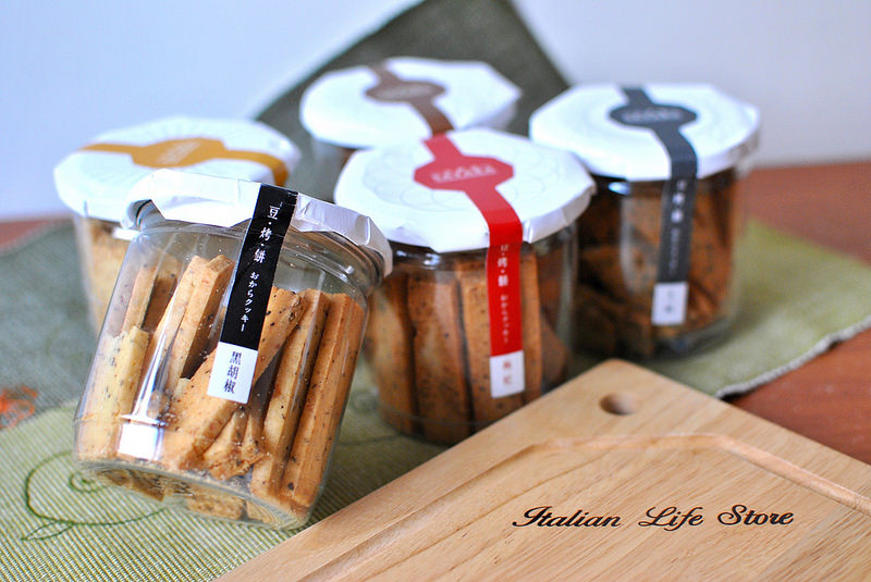 「豆烤餅」的系列產品是莎野佳自行開發的,也就是用製作豆腐、豆漿等豆製品時,所剩餘的殘渣(豆渣)加工而成的餅乾