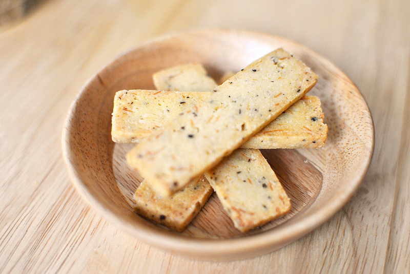 而豆烤餅的五種口味:黑胡椒、胚芽、枸杞、咖啡、芝麻也很有特色,尤其枸杞口味的餅乾本君是頭一次吃到!
