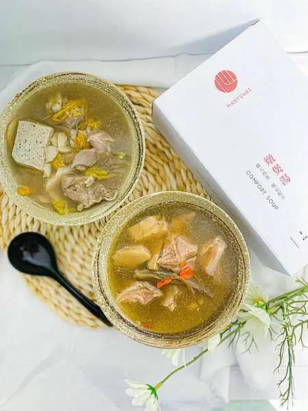 目前有十ㄧ款湯品,每天輪流依照季節性推出兩款煲湯,也有推出冷凍包全省宅配喔!