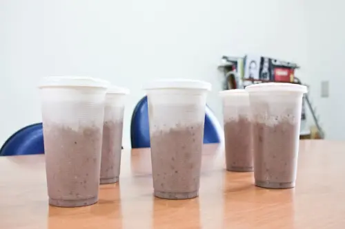 拿到芋頭鮮奶的兒子,一直說自已要搖散這漸層色,