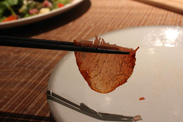 肥肉得部分吃起來很Q彈,瘦肉與肥肉分層得很明顯,一片肉能吃到兩種口感