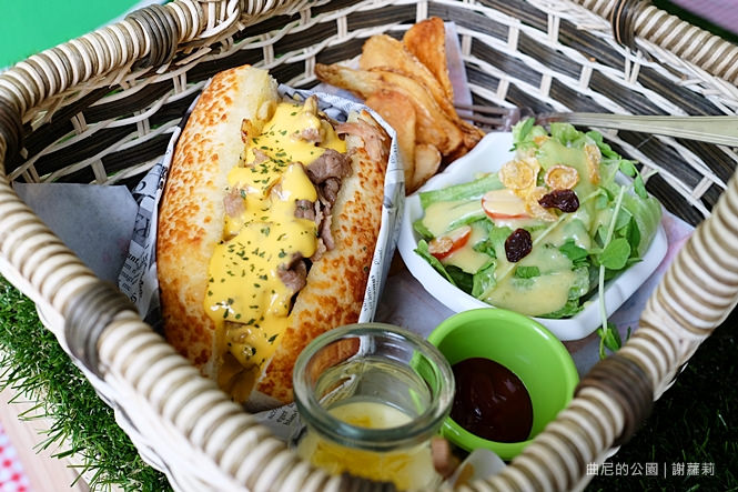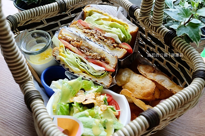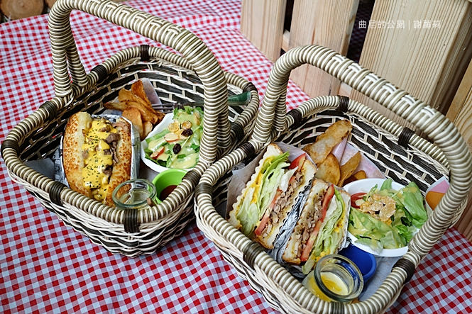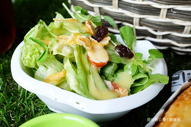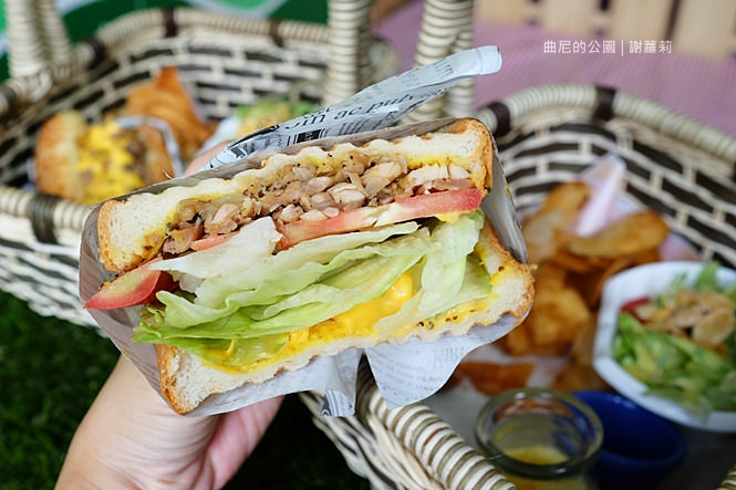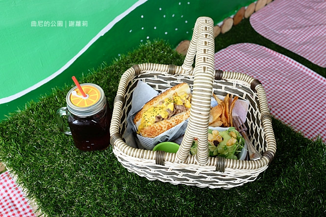 瞧瞧這個小提籃,說有多可愛就有多可愛,擺放在舖地草地的桌面上,完全就像坐在公園樹下用餐,感覺好有趣。