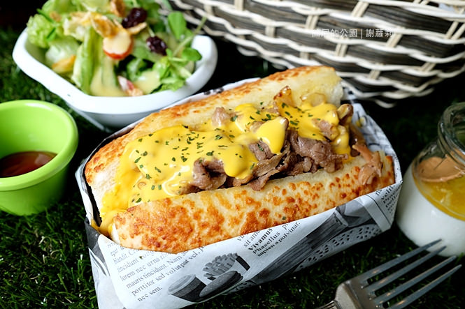 牛肉半油半肉,像是牛五花的呈現,而且它的份量給得好多,你會有一種狂塞入口的滿足感,只能說起司跟牛肉真是好朋友,搭起來的味道可是完全擄獲我的心呀!