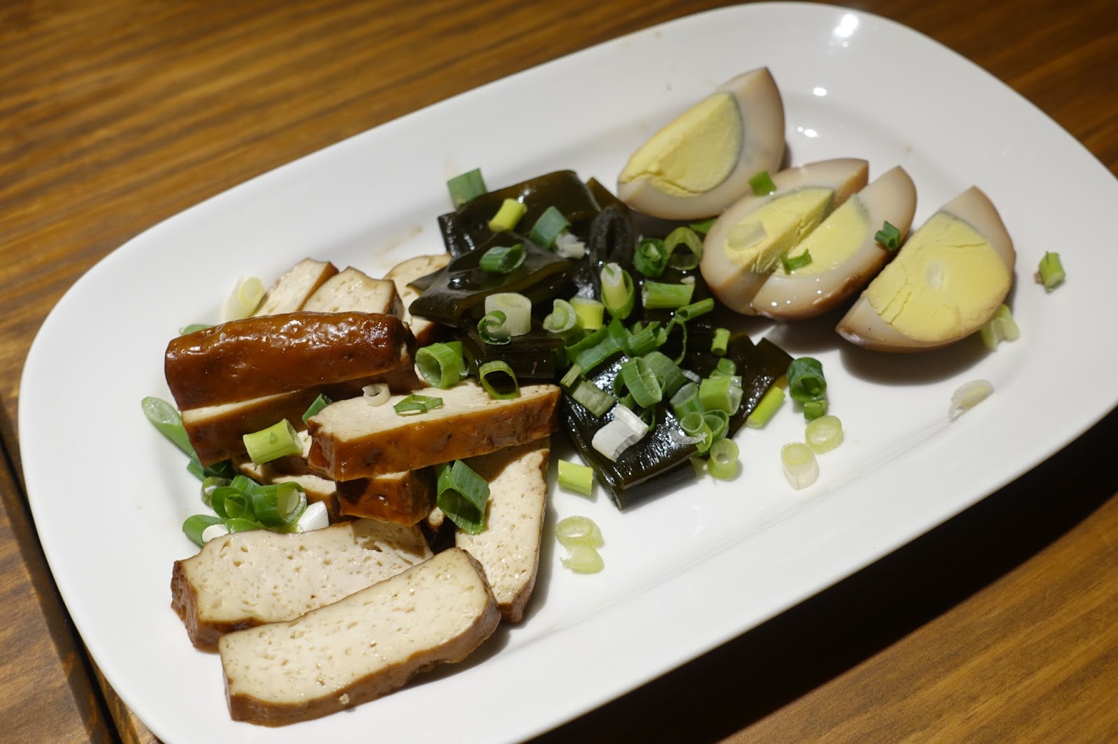綜合拼盤的價位很平實,加熱過的豆干、海帶、滷蛋三拼,送上桌時沒有淋醬汁,可以自行淋上油膏,我不愛醬汁就這樣直接吃,也還不錯!