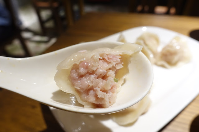 水餃並沒有想像中大顆,照片看起來略大,餃皮有彈性,肉餡飽滿,吃不太到高麗菜的味道,要價一顆6元的水餃,表現平庸。