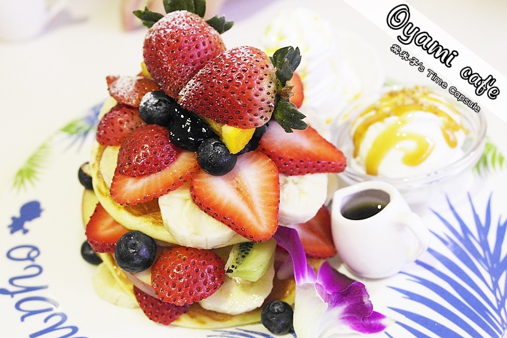 我們一眼就相中了這"夏威夷鬆餅",甚至為了它還點了壺花果茶搭配!!!!