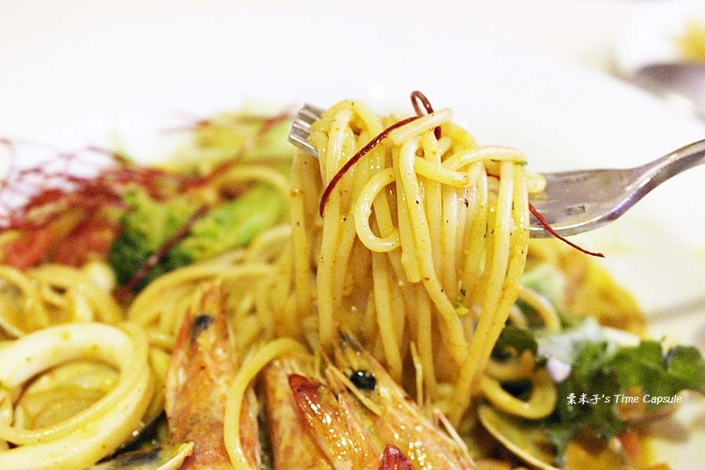 鮮美的海鮮、滑溜的義大利麵沾附了醬汁,
