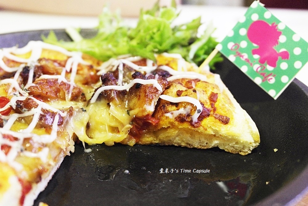 圓圓的小披薩上還插了個Q版馬兒的小旗子,