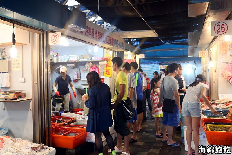 裡頭魚販擺著各式各樣的新鮮魚貨