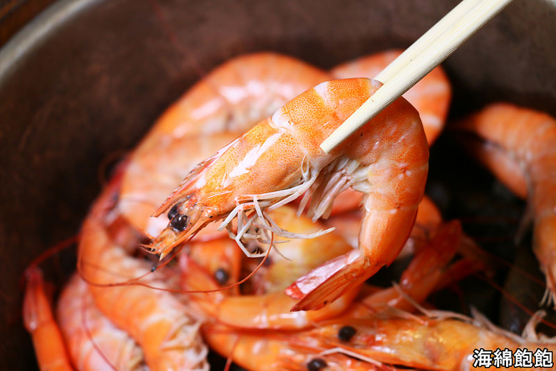 不用幾分鐘,鮮蝦就被滾燙的熱石悶熟了