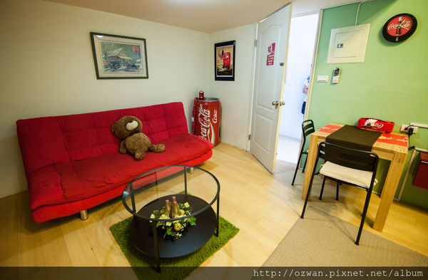 感覺很柔軟的沙發,我個人蠻喜歡可樂房,都想待著不走了,