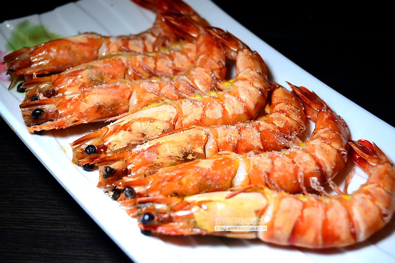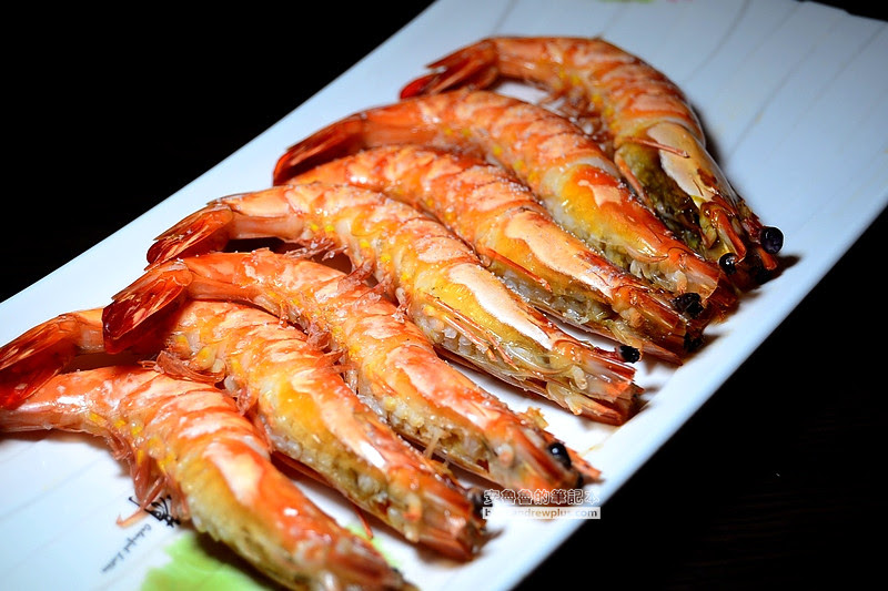 去掉蝦劍的七尾草蝦,烤起來的色澤相當的漂亮,整齊的列隊在盤子上等著饕客來享用。