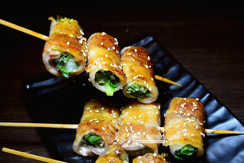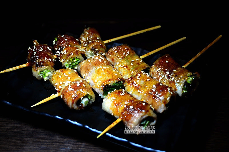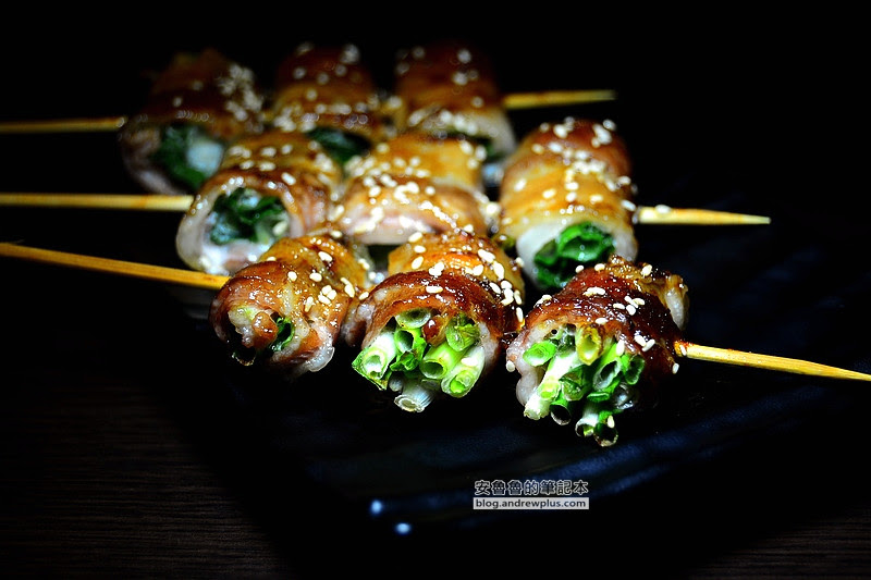 也一樣是三串一起上桌,使用五花肉將大量的青蔥緊緊包圍,肉片上頭刷上醬汁,讓食物吃起來更美味