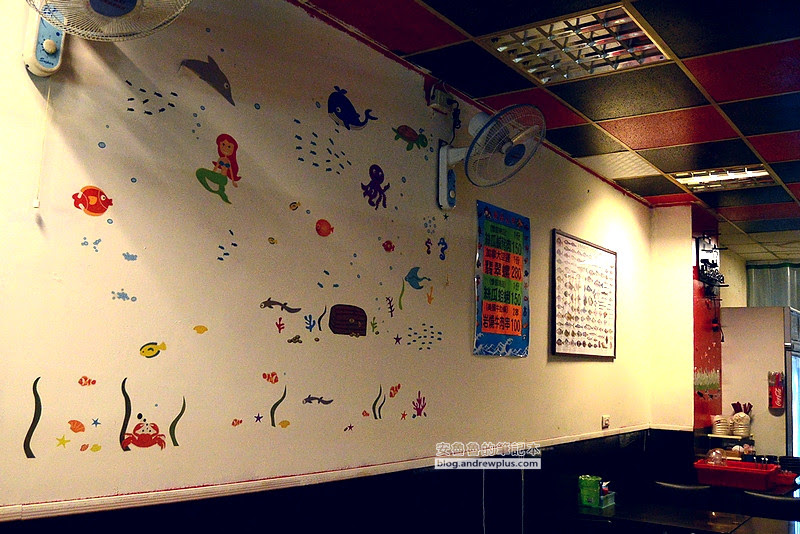 ▼老闆對於裝潢沒有太多的花費,想把裝潢成本回饋在食材的品質上,所以牆面粉刷和牆壁上這些可愛海底生物小貼紙,都是老闆親手自己來的!