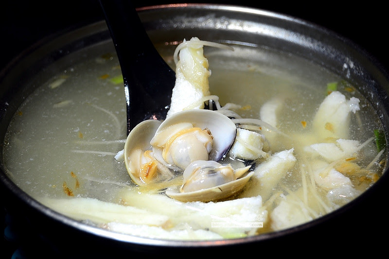 ▼湯頭相當鮮甜,大塊頭的蛤蠣咬下去會噴汁,每喝一口湯就覺得鮮味在嘴裡打滾