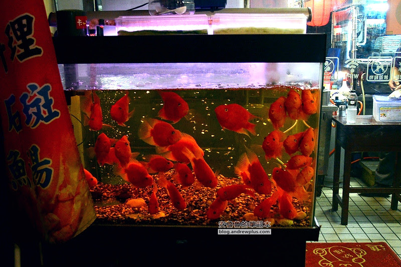 ▼由於是海鮮燒烤餐廳,店家想要營造海底世界的感覺,所以一入門就看到這一大缸漂亮的血鸚鵡