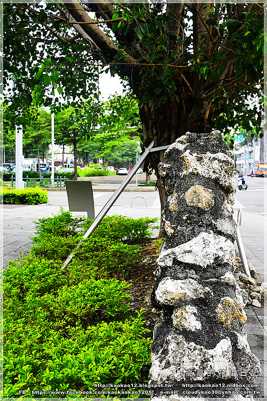 在大義街和公園二路交叉口處看到的『共生 咾咕石圍牆』,