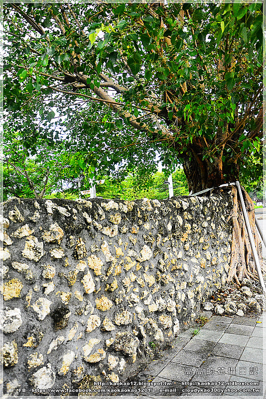 一棵菩提樹與昔日的咾咕石圍牆親密的結合在一起,