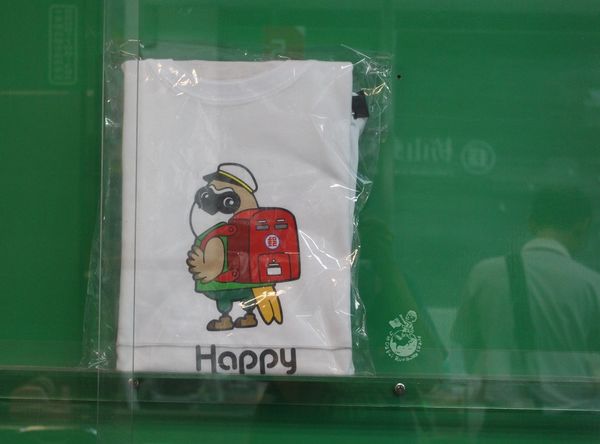 ▲伯勞鳥郵筒T-Shirt ,不過這好像純粹展示,沒有販賣。個人覺得枋山郵局有些可惜,這麼有特色的郵局,居然沒有順勢推出相關的周邊商品,像是枋山郵局獨家的明信片、紀念章、 限定郵戳、 伯勞鳥郵筒公仔等等限定紀念品,像是日本的郵局就做得很完整,我常在日本買郵局限定的周邊就買到快傾家蕩產。