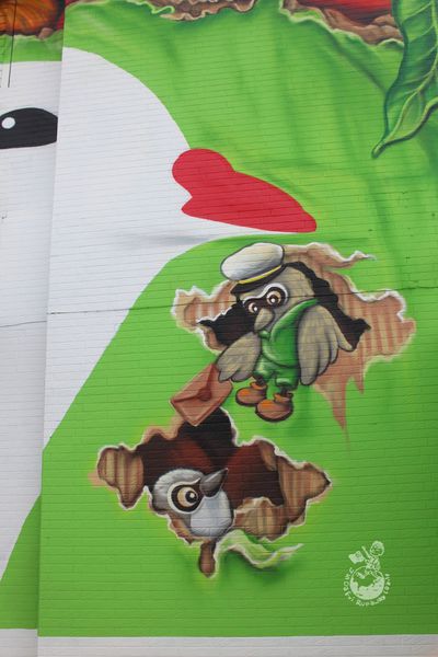 ▲其實早期楓港鄉親濫捕伯勞鳥,後來社區努力將有「伯勞鳥之屠殺戰場」之稱的楓港轉變成「伯勞鳥溫暖的樂園」,楓港國小旁邊還有了伯勞鳥生態展示館。因此枋山郵局的郵筒以伯勞鳥取代和平鴿,我認為這隻可愛的伯勞鳥郵筒不僅是傳遞信件,同時也傳遞了生態物種保育的重要性。
