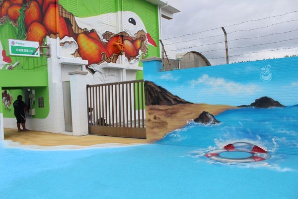 ▲枋山郵局鄰近大海,故一旁的牆面便是3D彩繪便是海洋風
