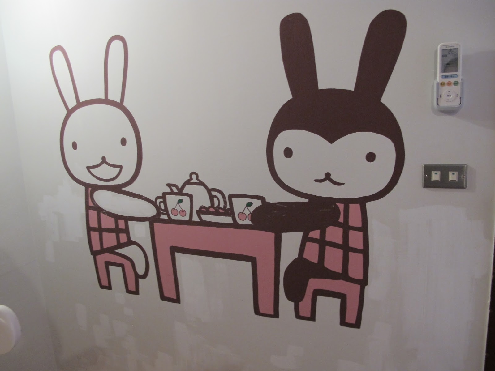 牆上貼著白兔妹的大貼紙,它是拍照取景的好地方