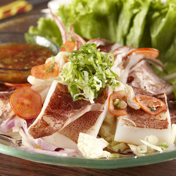 超夢幻海鮮逸品「限量基隆透抽」,老闆打烊後親自於基隆基隆新鮮漁貨,使用「活凍」低溫疾速冷凍,完全鎖住肉質原有的鮮甜,撒上些許胡椒與鹽,軟嫩鮮甜的透抽彷彿在口中飛舞,沾取酸甜清爽的七味海鮮醬,來自海洋最強烈的猛攻,大啖海鮮的滿足感,排山倒海而來!