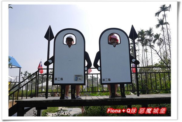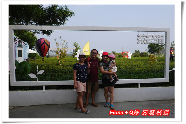 Fiona已經迫不急待的戴上斗笠拿著心情立牌,來到「茶二指故事館」的大型白色相框拍照了,這個框的景取的真好,一眼望去有一大片綠油油的茶園,中間還有幾個可愛又KUSO的人型立牌,實在太好拍啦 !