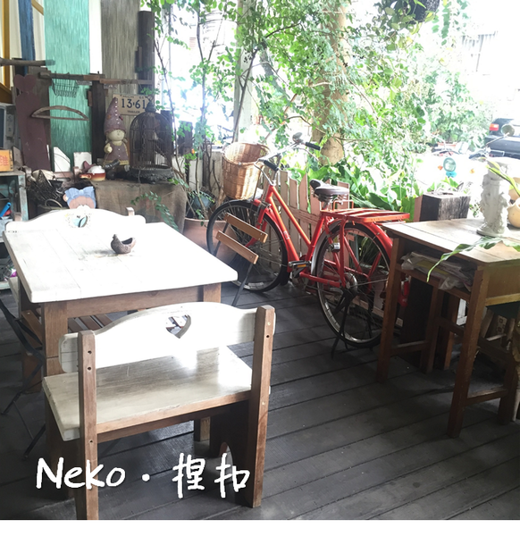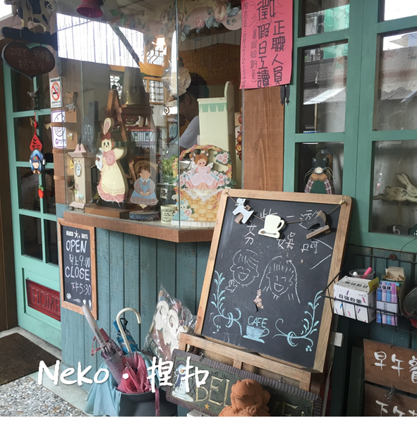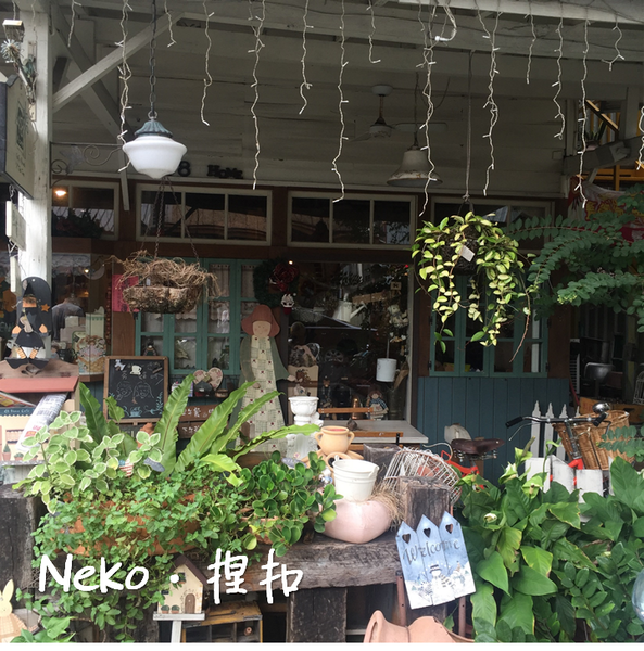 可愛的牌子上寫明了提供:早午餐、火鍋、下午茶、咖啡,門外佈置得綠意盎然,用了許多雜貨來佈置感覺非常的適合拍田園鄉村風照片XD