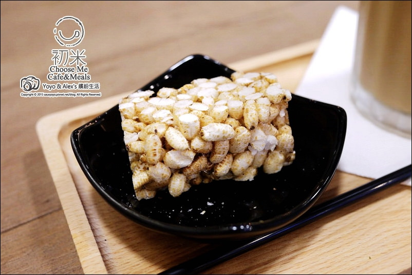 咖啡上桌時還會附贈一小塊米香,米香吃起來脆脆香香的,還不錯,。