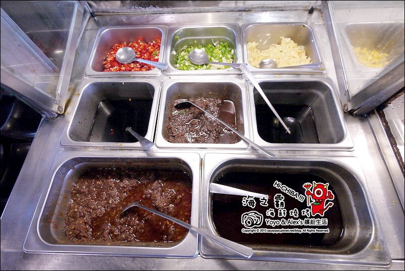 有蒜蓉、辣椒、蔥花,可依個人口味自己搭配喔!!!