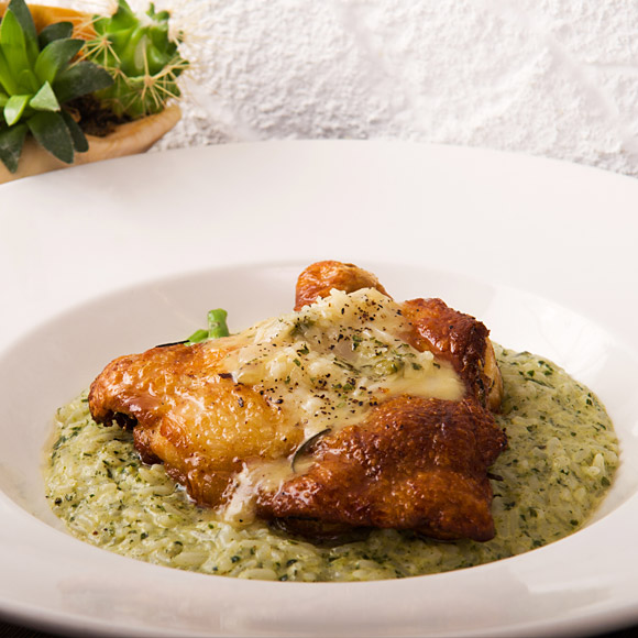 高湯熬煮的燉飯,將長米煮至半生熟,加入蘿勒、堅果、起司熬煮,恰到好處的米粒口感,濃郁而不嗆的青醬。或者,你也可以自由搭配番茄紅醬、奶油白醬、或是手工取囊的墨魚醬,享受不同餐點帶來的不同風采。