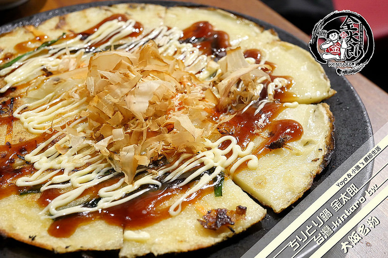上桌時騰騰煎餅上層的柴魚像是在跳舞般地舞動著,柴魚下方有醬汁以及美乃滋,