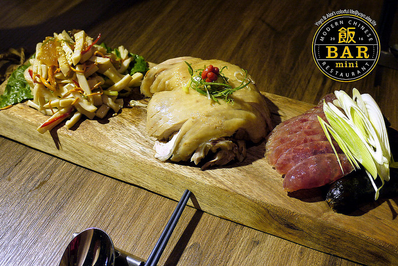 算是點一道菜就能吃到三種飯BAR經典口味的概念,菜色搭配分別肝腸寸斷、花雕遇到雞、瓜條蟲草花蜇頭,