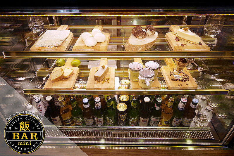 倒是比較好奇這種類型的餐廳真的會有客人跑去玩飛鏢嗎 ?!,大門旁的吧檯與冰櫃展示與擺著不少的甜點與酒品種類,