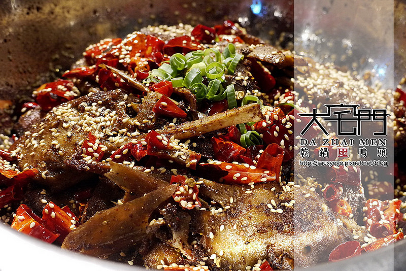 看到這就知道來大宅門的重頭戲就是這道乾鍋鴨頭啦,整鍋紅通通的模樣真的是會嚇壞不喜歡吃辣的朋友們,