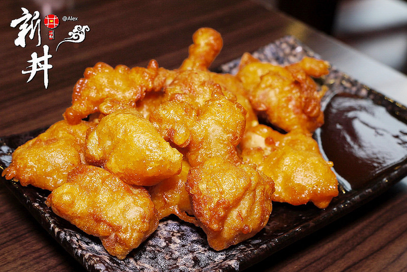 小強我對炸雞有種無法抗拒的愛,所以看到炸物內有炸雞忍不住就加點了,新丼的炸雞有搭配自家調製的酸甜糖醋醬,兩者搭配很好吃喔。