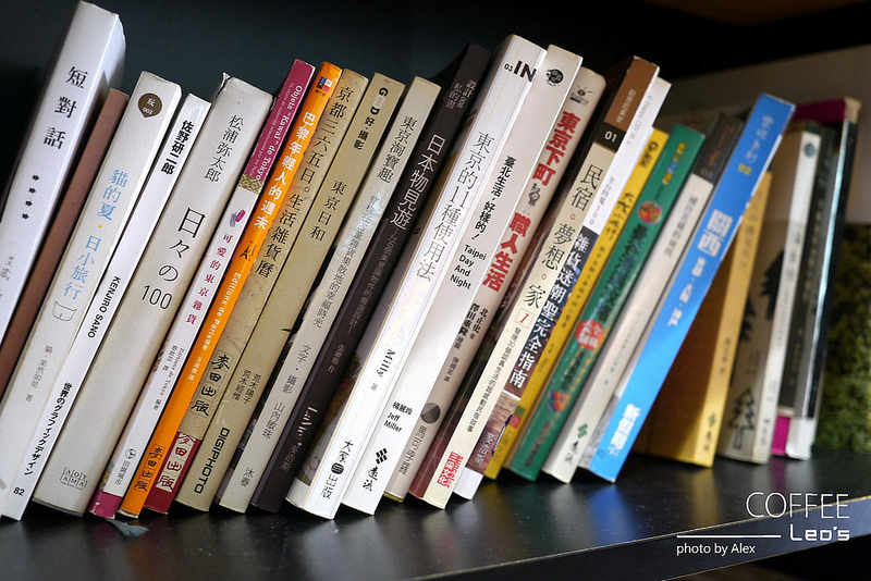 書架上陳列著各類旅遊、美食、攝影書籍,來此用咖啡的課都可以隨意自取閱讀,但可別忘記閱讀完畢要將書給放回去。