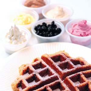「比利時鬆餅」獨特比利時烈日鬆餅,外酥脆而內軟綿可口,淋上特殊醬汁,搭配新鮮水果,與香滑的義大利冰淇淋與優格冰淇淋相映,享受優質爽口的國際美味。原味、巧克力與巧克力抹茶鬆餅口味多元,搭配咖啡,享受愜意無負擔的午茶時間。