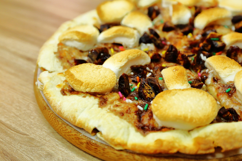 吃起來還真的有點像龍眼乾,這次品嚐到的甜pizza實在太衝擊我的味蕾了,我覺得我可以一個人嗑掉一整個,哈哈哈哈哈哈~