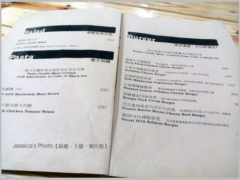 趕緊先上菜,這次總共拍到 胡麻醬起司豬排堡、豆腐野菇蔬食堡、茄汁義大利麵,