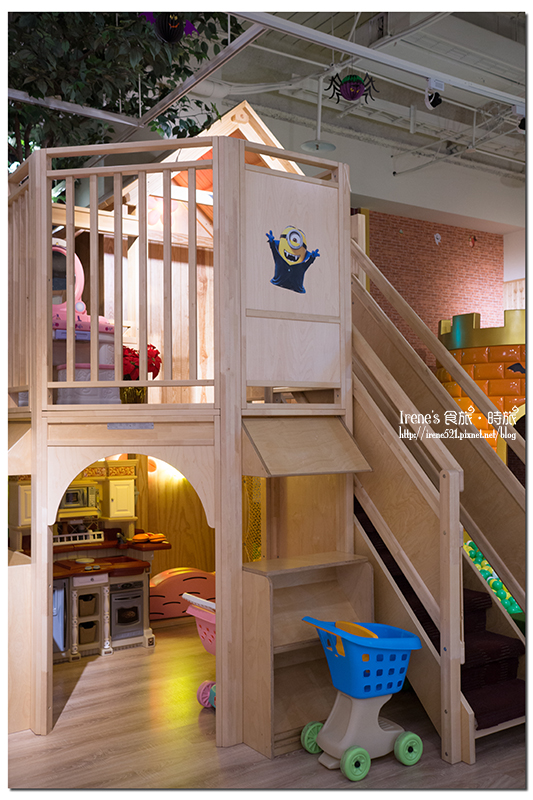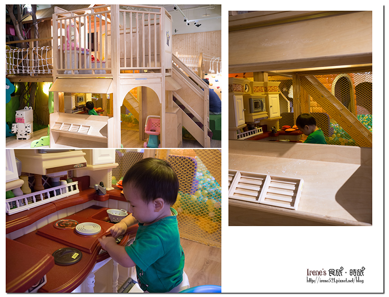 把整座樹屋搬到遊戲區中,非常的吸睛,樹屋下方是廚房區,還有仿照結帳櫃檯的設計,