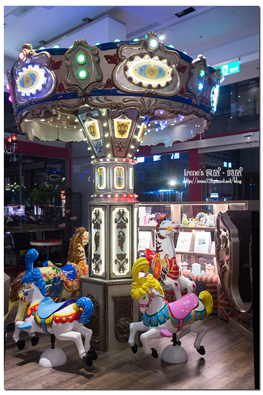 棠朝BossMama以室內的旋轉木馬為主要特色,一入門就看到這座迷你可愛的旋轉木馬,