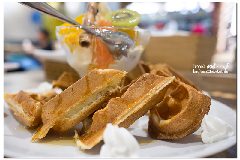 雙人餐的組合很超值,包含兩個人的300元自助吧費用還有兩份餐加一份鬆餅甜點,